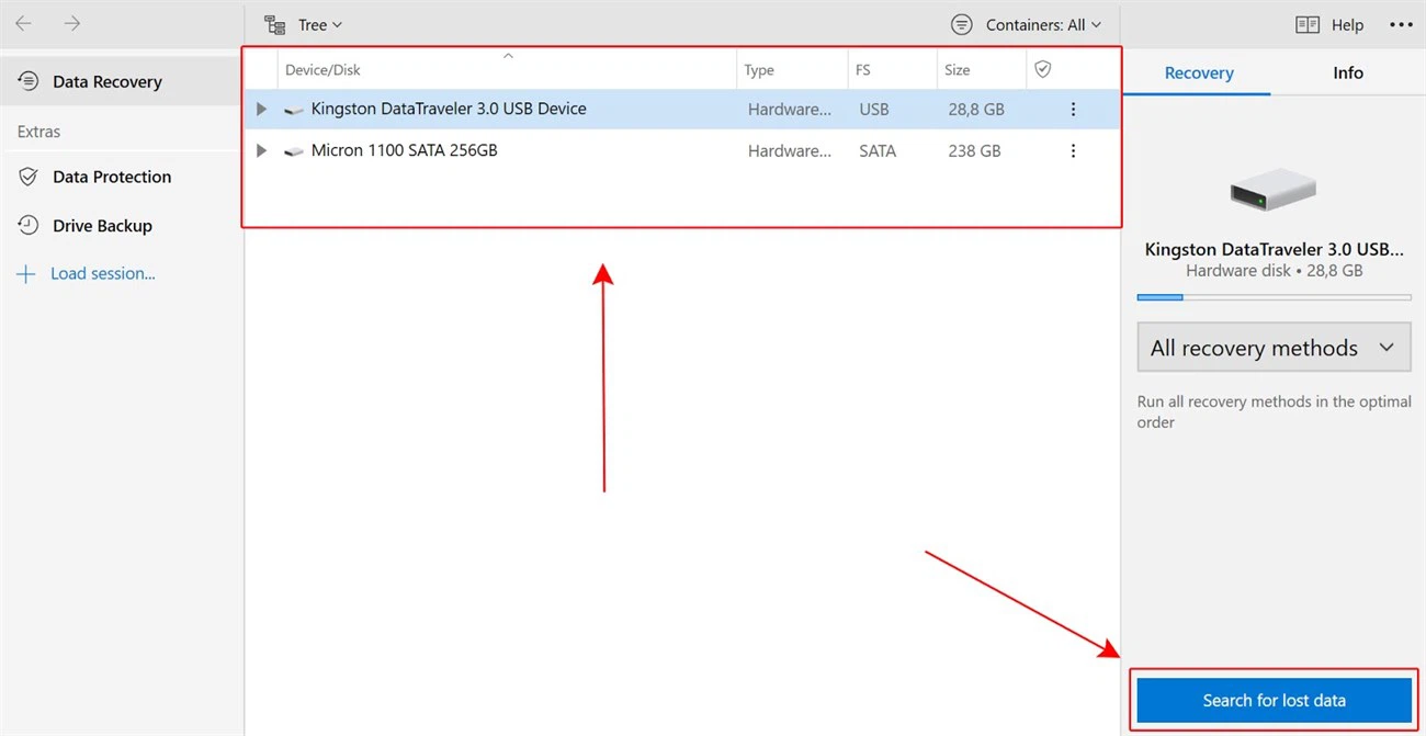 Disk Drill is capable of recovering all types of data from videos, music, photos, documents, etc., not only on USB but also on main hard drives. The software fully supports popular drive formats such as NTFS, FAT, exFAT, HFS + Mac drive.