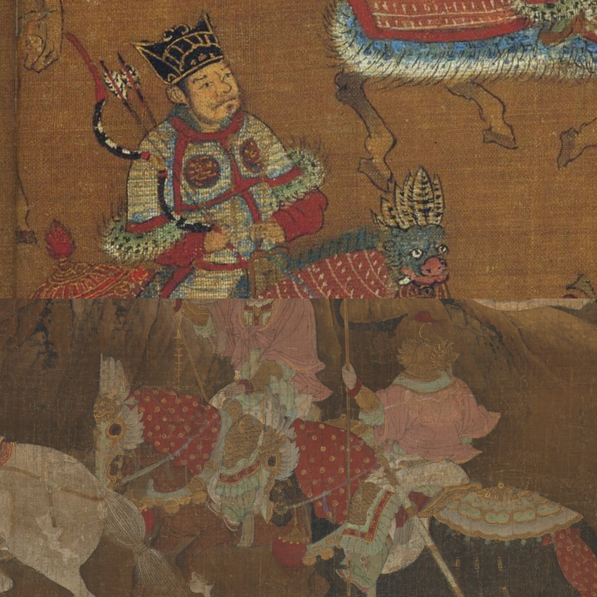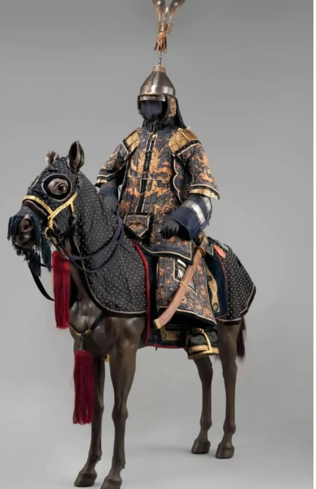 Except the influence in Tibet (Fig. 5), the continuation of horse guards in later Central Plains were more like ceremonial warfare, such as the horse armor from Song (960-1279) painting “Da Jia Lu Bu” (Fig. 3: 大驾卤簿图, lit. imperial guards of honor) and “Emperor Xuanzong’s Flight to Shu”(Fig. 3: 玄宗/ 明皇幸蜀图) . And the truth is, even though there were so many paintings about heavy cavalries from Mongolian Yuan and other Khanate, but many unearthed horse guard from them were made of fabrics. Such similar forms still appeared until the Qing Dynasty (Fig. 6).