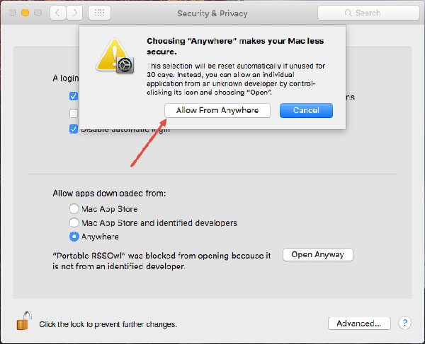 After you turn off Gatekeeper, you will have 1 more place in the Allow apps downloaded from section, which is Anywhere – You check this box to allow you to download it. apps outside the AppStore already. You can also use this method to check if Gatekeeper is definitely turned off (if not, there will be no 3rd option).