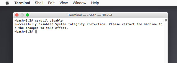 - Step 4: If the machine shows the line Successfully disabled System Integrity Protection, you have successfully turned off SIP.