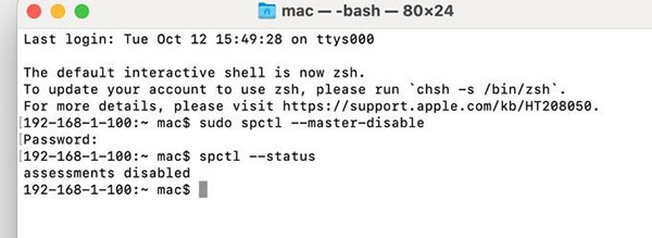 a. Turn off Gatekeeper using Terminal