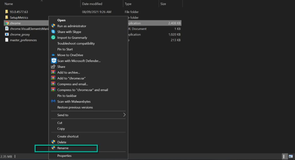 Chrome.exe. Right click on it and select Rename.