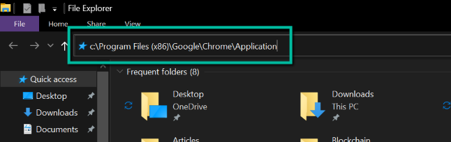 Open File Explorer by pressing and holding Windows key + E . In the location bar found on File Explorer, paste: “c:\Program Files (x86)\Google\Chrome\Application