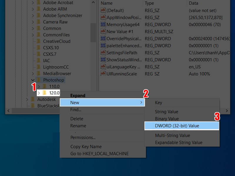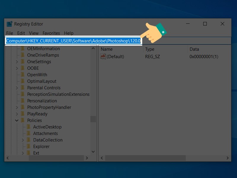 Step 2: Go to the path: \HKEY_CURRENT_USER\Software\Adobe\Photoshop\120.0.