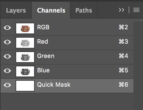 Step 2: Open Channels in the Layers panel, double check all the layers to make sure we’re not working with Quick Mask Channel or any other Channel mode.