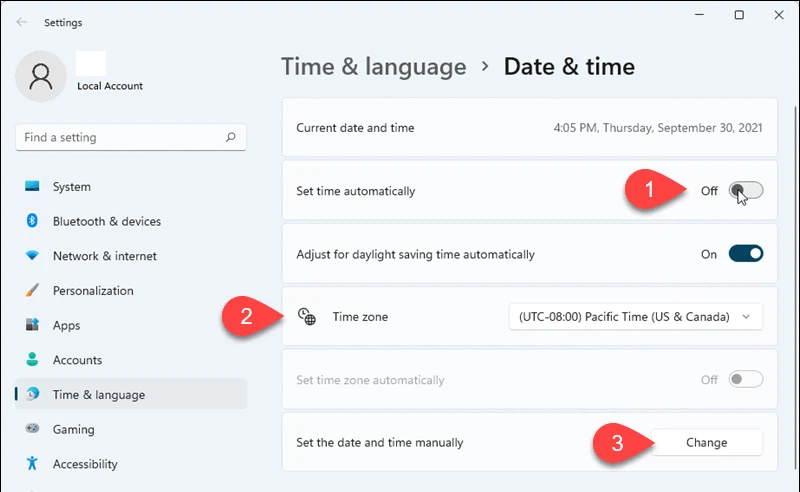 Step 3: Click the Change button right next to Set the date and time manually and set it to a random number of dates and times.