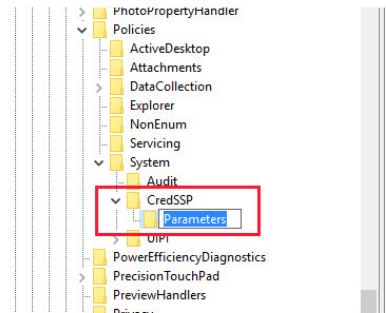 4. Inside CredSSP, create another new key called Parameters.