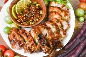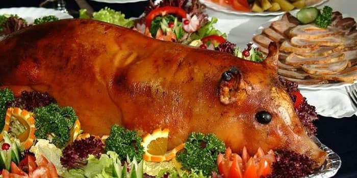Pork belly stuffed with cabbage and apples.