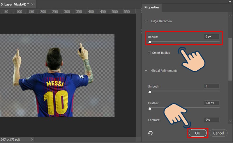 - A new tool panel appears, customize the Radius parameter on the slider > This tool to remove redundant details on the image