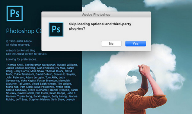To check and find out which plugin is causing Photoshop to freeze and hang, first open the application and press the Shift key . On the screen will display the message “Skip Loading Optional and Third-Party Plugins”, click Yes.