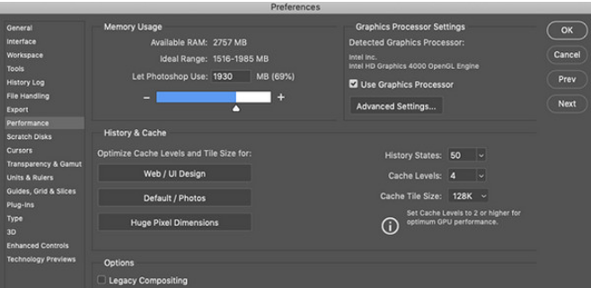 Sol 5: Tweak Photoshop Performance Settings