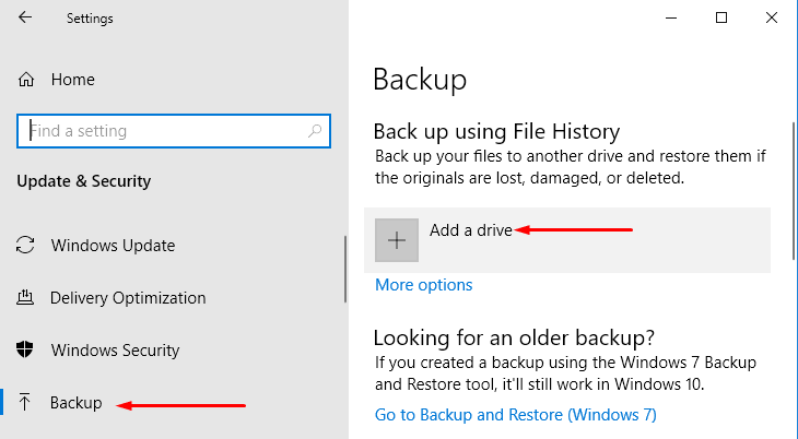 Step 3: Select Backup on the left side of the next page.
