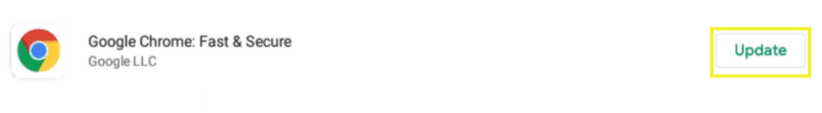 - Go to Google Play Store and search for the Chrome app. Hit on update button as shown below: