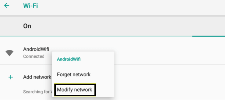 - In Wi-Fi network connection, tap on Modify network button: