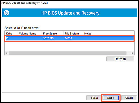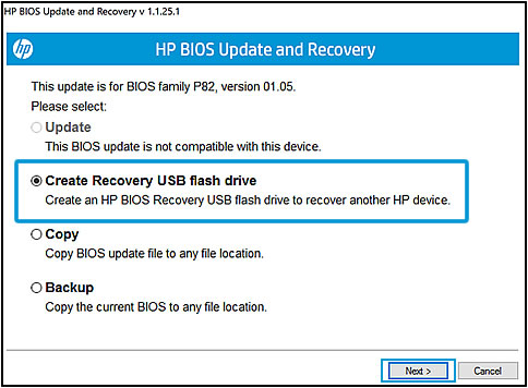Use HP BIOS Update and Recovery to create a BIOS recovery flash drive. To complete this step, you need an empty USB flash drive (no data). The USB drive is not a boot – boot drive.
