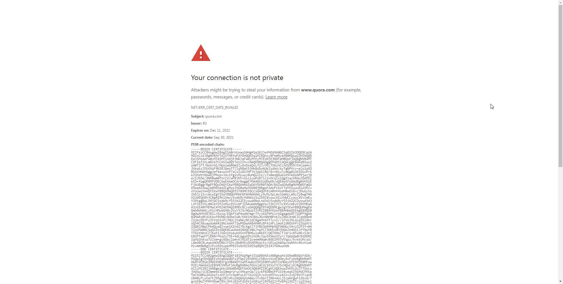 I looked for a certificate which was expired on 30th September 2021 when was the time all started going wrong.