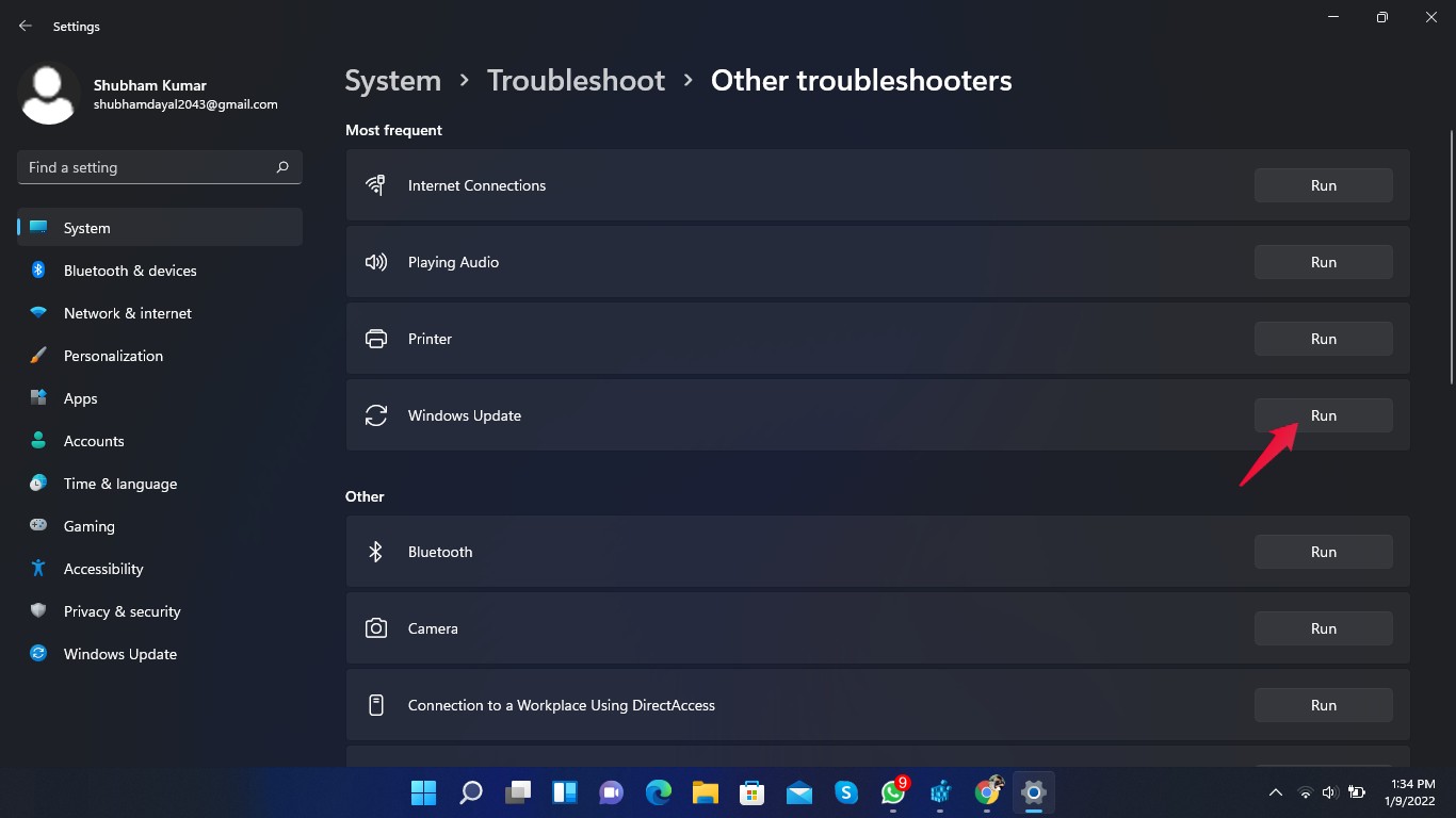 - Click “Run” next to “Windows Update” and follow the on-screen instructions.