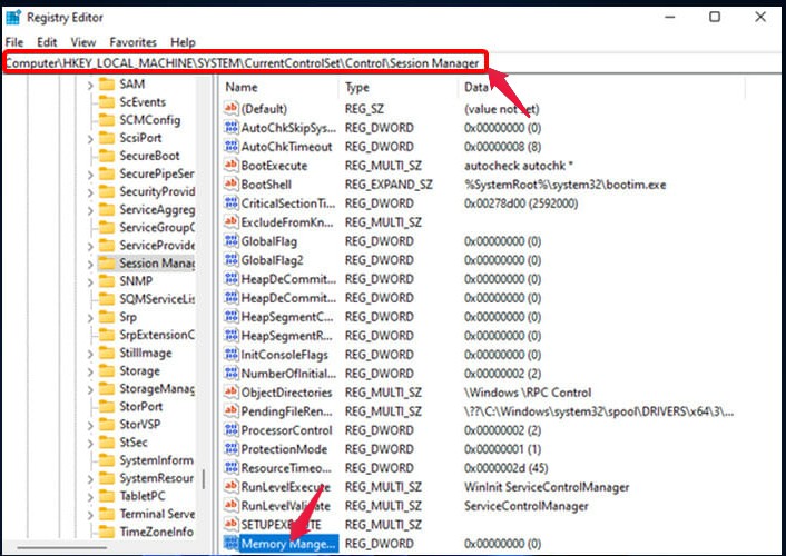 HKEY_LOCAL_MACHINE/SYSTEM/CurrentControlSet/Control/Session Manager/ Memory Management