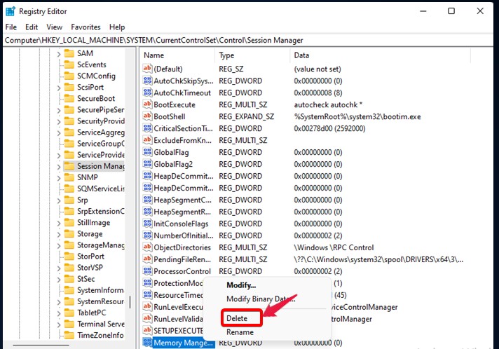 - Right click on the CommitLimit value in the right pane and click Delete. Click yes when a confirmation message appears.