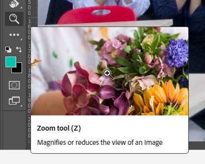 - Using the Zoom tool in Photoshop: