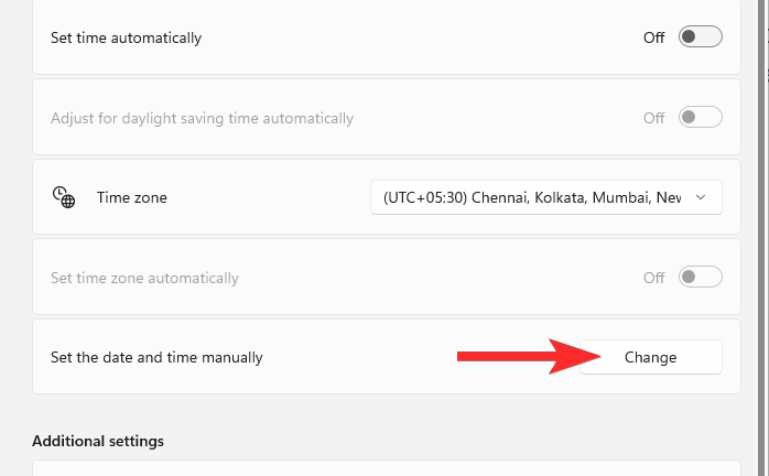 Click Change under ‘Set the date and time manually’.
