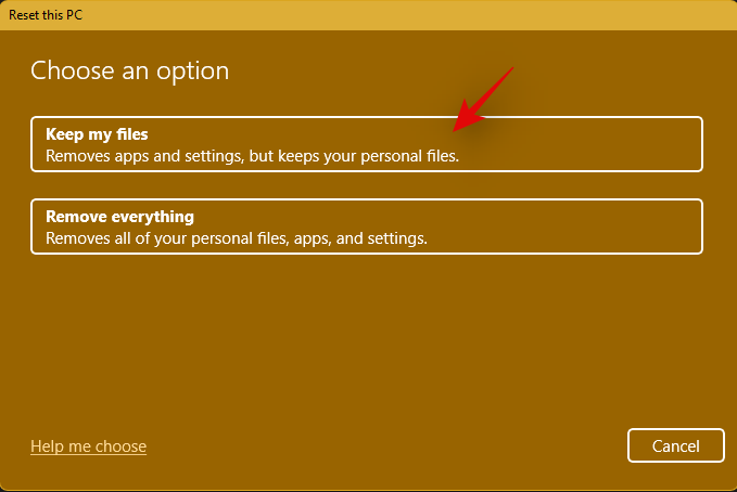 Select ‘Keep my files’ and follow the on-screen instructions to refresh your PC.