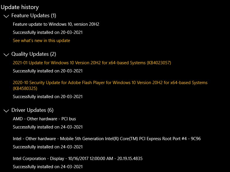System itself causing 100% Disk Usage on PC after 20H2 and optional driver updates