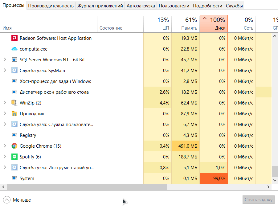 100% disk usage beacuse of System process