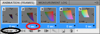 ), click Make Frames From Layers . You can also click on Reverse Frames if needed. This will place each layer into each frame in the animation. - Change the interval for each frame. Make sure you are in frame view and not timeline. If you don’t see the thumbnail icons of all layers in the Animation/Timeline panel, click on the icon in the bottom right corner, just hovering over it shows “Convert to Frame Animation”. Now go back to the Animation/Timeline menu and select Select All Frames .