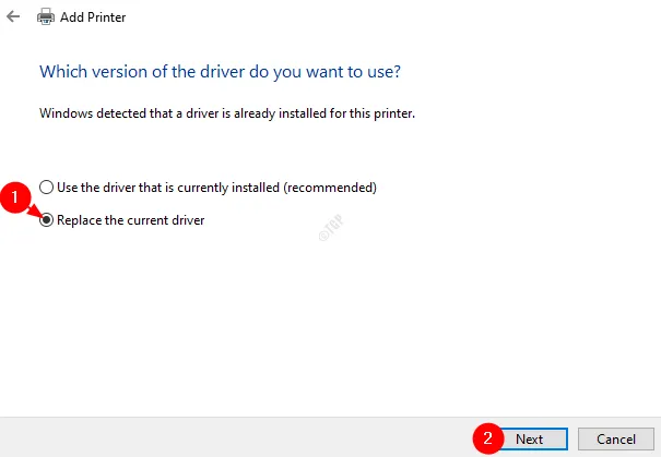 Step 12: In the window that appears, check Replace the current driver and click Next