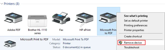 Step 4: Right-click on Microsoft Print to PDF and select Remove device