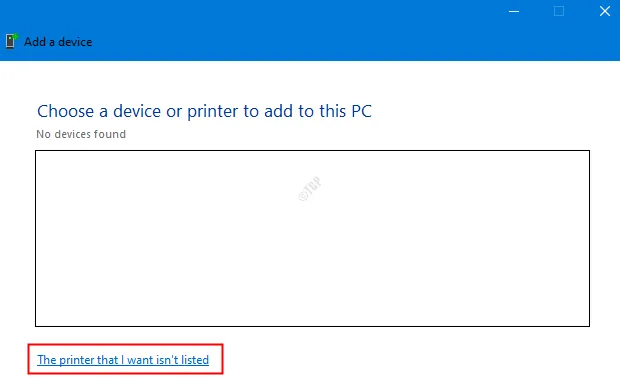 Step 8: In the wizard that opens, click The printer that I want isn’t listed as shown below
