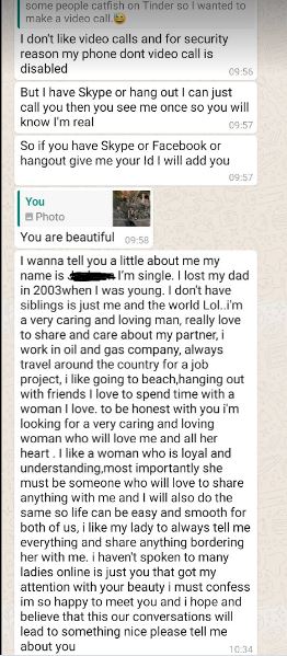 I saw his profile – it was exactly what I am looking for (except for the “petroleum engineer” part). So boom, we matched. He sent me message introducing himself from Houston, USA. I was not impressed to be honest. Somehow I was reminded of Chris Watts case in the US and I did NOT feel good about the petroleum engineer part.