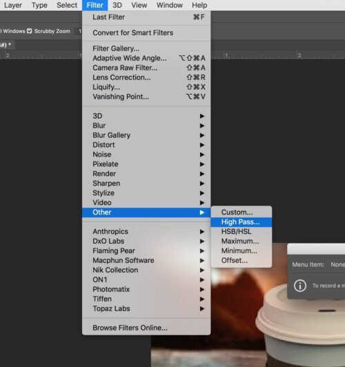 Continue to follow the path Filter> Other> High Pass.