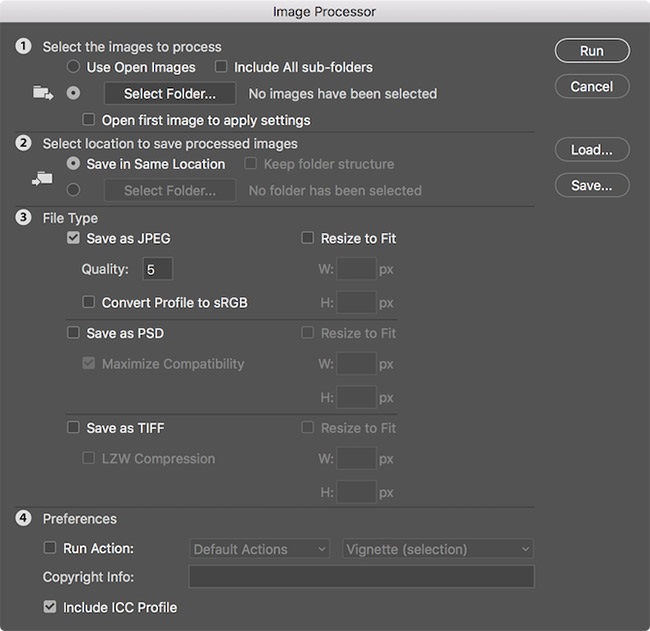 Instead of resizing each image individually, you can use a script to resize multiple images at once. The way to do this is to choose File > Scripts > Image Processor. Then, choose the location to save the changed image on your computer as well as the file type (jpeg, PSD or TIFF) and the file quality. Next, you choose Resize to Fit to choose a specific width or height. Finally, click Run to complete the batch image resizing.