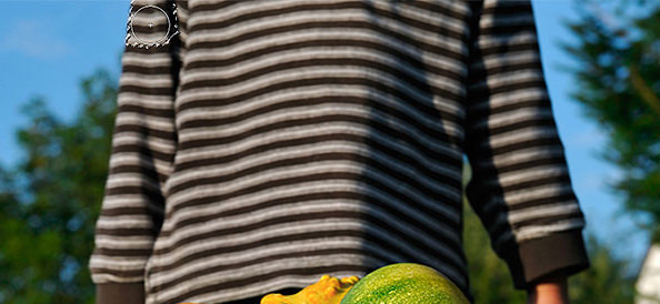 To start using quick selection. I’ll move the Quick Select Tool’s cursor to the top left corner of the kid’s sweater. And I will click once with my mouse. The initial selection border appears around the area I clicked on.