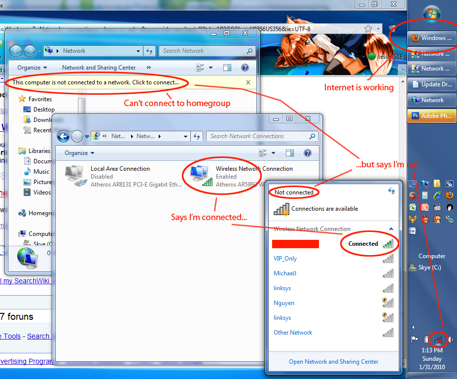 I’ve had this problem for a while now and I didn’t really mind since I still have access to the internet. However, today I was trying to access my HomeGroup but it tells me that I’m not connected to the network.