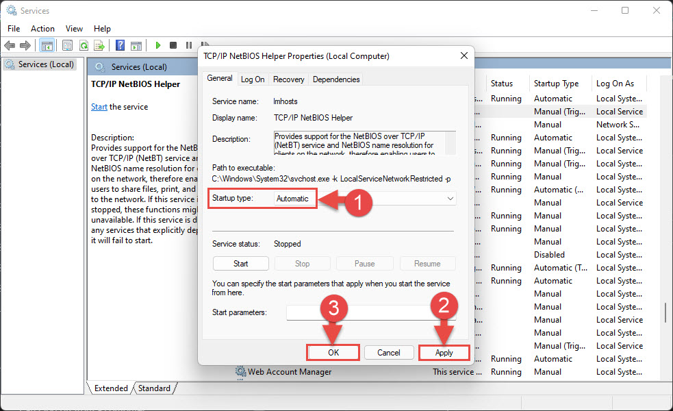 - TCP/IP NetBIOS Helper
