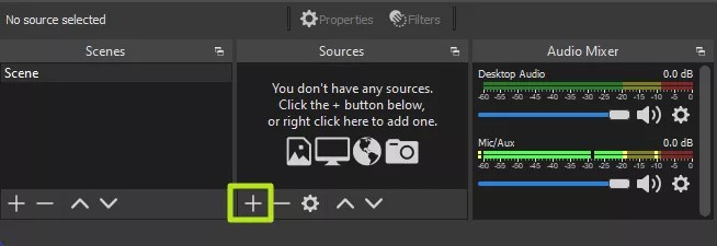 2: In the main screen of the application, click the Plus button (+ sign) below the Sources section to add a content source.